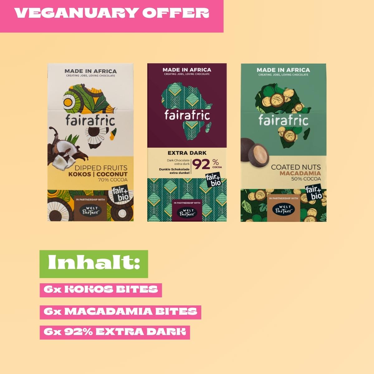 Mit insgesamt 42 handgemachten veganen Schokoladen & Bites bietet dieses Bundle Genuss für jeden Geschmack – ideal zum Teilen in der Familie, mit Freund:innen oder über den ganzen Monat hinweg.