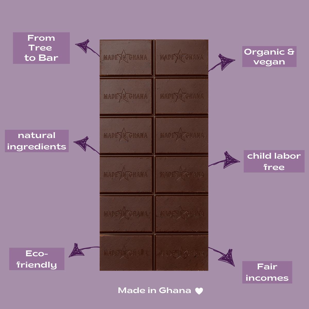 fairafric is the first superfair organic chocolate produced entirely in Ghana. With every bar you buy, you enable more prosperity for the people at the beginning of the supply chain, four times more income in the country of origin of the cocoa beans, well-paid middle-class jobs in Ghana, the highest cocoa premiums in West Africa, and real system change instead of just development aid.