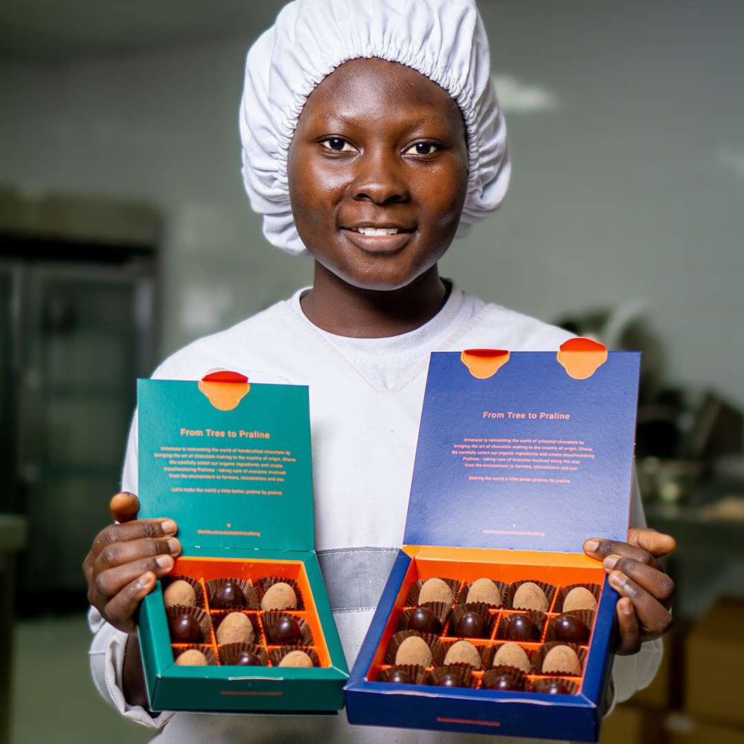 Amanase is shifting value creation back to Ghana – to where the cocoa grows. Through artisanal training, local production, and fair wages, young people are given real prospects. In addition, local incomes are multiplied. This creates a new economic model: fair, sustainable, and made in Africa.