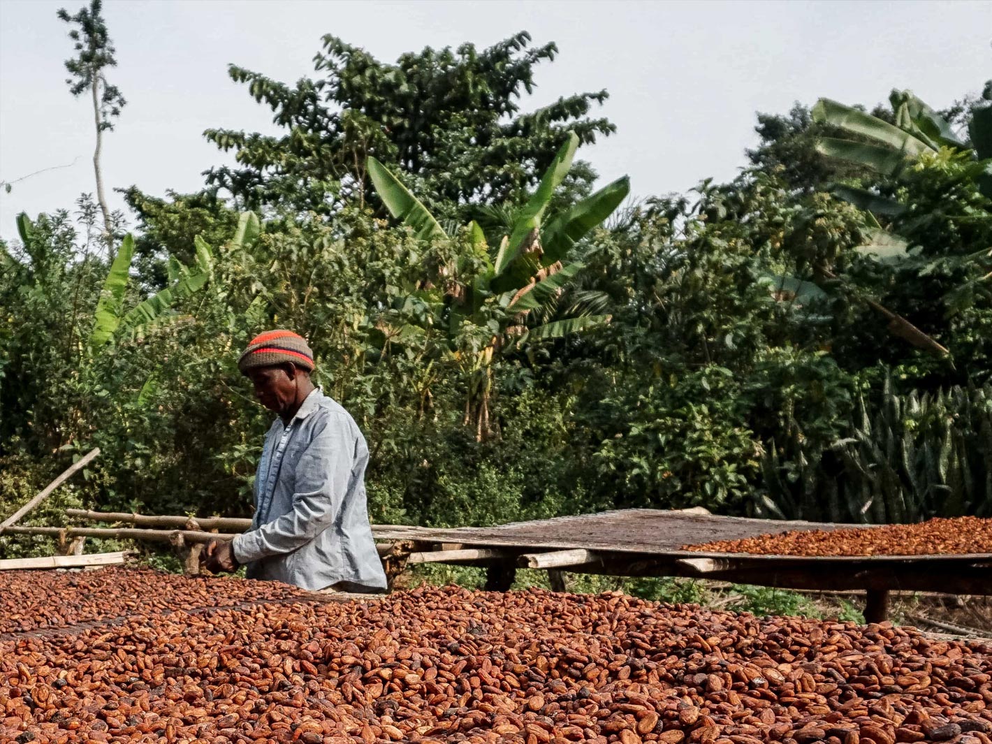 Für unseren Bio-Kakao zahlen wir eine Prämie von $792.34 pro Tonne Kakao. Für alle Kakao-Bohnen aus Dynamischen Agroforst zahlen wir sogar weitere $250 pro Tonne direkt an die Farmer*innen aus, sodass die Prämie für DAF bei insgesamt $1,042.34 pro Tonne Kakao liegt.